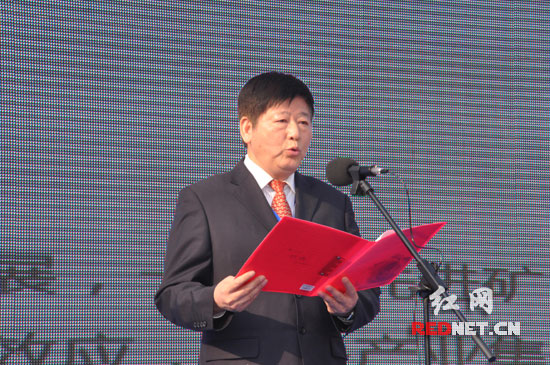(湖南省商务厅副厅长罗新国为展览会致辞。)