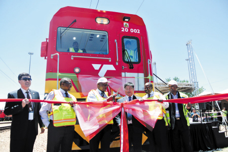 昨日,由中国南车株机公司研制的首批电力机车在南非比勒陀利亚举行交接及剪彩仪式。 刘天胜 摄