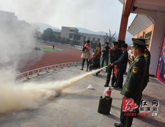 演示灭火器使用