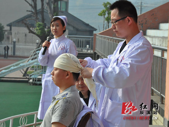 随后,县消防大队官兵为全体师生及观摩人员演示了灭火的基本动作,教授遇到火灾如何规范报警;县红十字会医院医护人员示范演练受伤人员的止血、包扎、固定、搬运四大急救技术和心肺复苏。