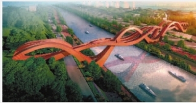 长沙梅溪湖步行桥外形似“中国结”。 效果图