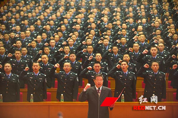 (湖南省直机关2013年录用的新人们在跨入公务员行列之际进行庄严宣誓。)