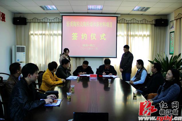 红网桃江站11月26日讯(分站记者熊军 杨学文)11月25日,轻质陶粒及陶粒墙体新材料项目签约仪式在桃江县经济合作局举行,副县长刘武和桃江华信陶粒墙板环保新建材有限公司董事长杨永谦签订了项目投资合同书。