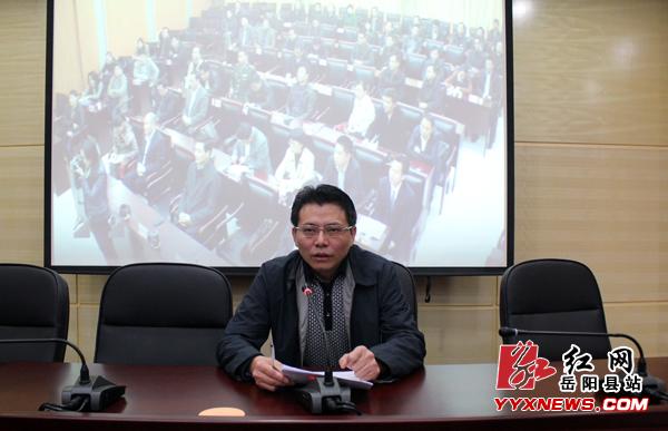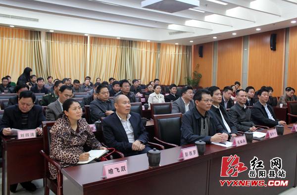 红网岳阳县站11月26日讯(分站记者 彭会 通讯员 万森 张阳)11月26日,党的十八届三中全会精神中央宣讲团报告会电视电话会议在省会长沙召开。中央宣讲团成员、国务院研究室副主任韩文秀作宣讲报告,湖南省委书记徐守盛主持报告会并讲话。岳阳县委书记毛知兵,县委副书记、县长张中于等全体在家县领导及县直各单位负责人在岳阳县分会场收听收看了报告会。