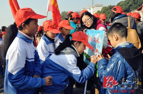 活动中,湘潭市第四中学的少先队代表发表保护母亲河的倡议书;志愿者们举行“同饮湘江水·保护母亲河”宣誓仪式;志愿者们开展了“主题签名”宣传活动;志愿者们还对湘江沿岸的垃圾、污点进行了清理。志愿者们以实际行动践行环保理念,宣传维护生态安全的重要性,倡导爱护环境、节约低碳的生活方式。