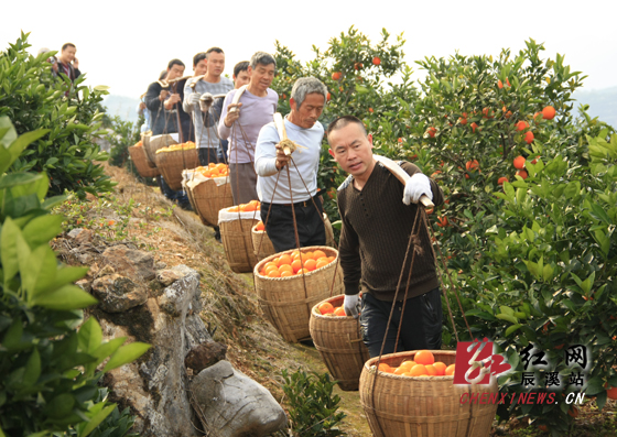 红网辰溪站12月3日讯(通讯员 邬良海)连日来,辰溪县城郊乡橘农忙着采摘脐橙。今年该乡6000亩无公害脐橙喜获丰收,亩产值突破5000元。红红的脐橙,可观的收入,让农民群众喜笑开颜。