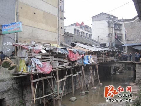 河道上违章搭建的棚户