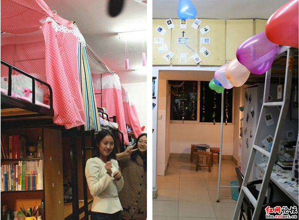女生寝室(左图):干净整洁,还带点儿小浪漫。这年头,男人们不给浪漫,姐们儿自个儿创造!