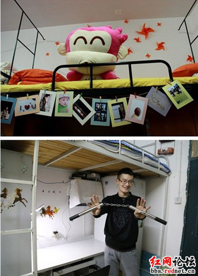 红网长沙12月4日讯(记者 刘力)12月4日,红网高校论坛一标题为“湖师大新传院寝室文化节大晒图:男女寝室放在一起对比,这才知道屌丝与女神的差距”的帖子引起了网友的关注。通过网友对男女生寝室照片的比照,男女生寝室文化差异瞬间展露无遗。帖文中幽默谐趣的旁白更是让这种差距展现到了极致。