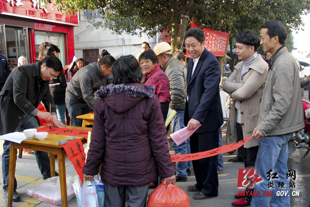步行街路口上更是造成了“人潮拥堵”,原来是县书法协会组织会员在这里开展“普法对联免费送”活动。3个书法台前挤满了慕名而来的群众,大家都想把“书法大师”的普法对联带回家。县书法协会会员林国勇介绍,这次活动共赠送普法对联两百余副,受到了老百姓的热烈欢迎,不仅增添了安定、祥和、喜庆的气氛,更营造了良好的法制氛围,使老百姓懂法、知法、守法,感知县委、县政府提供的法律温暖。