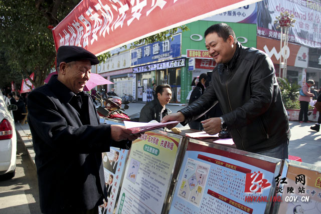 红网炎陵站12月5日讯(分站记者 刘琦 通讯员 钟晓芬)12月4日,炎陵县委政法委、县委法治炎陵建设领导小组组织县司法局、法院、检察院、公安局、林业局、住建局、城管局等26个单位,在炎陵中路开展“大力弘扬法治精神,共筑伟大中国梦”为主题的“12·4”全国法制宣传日活动。炎陵县委常委、政法委书记谭新林亲临活动现场指导。