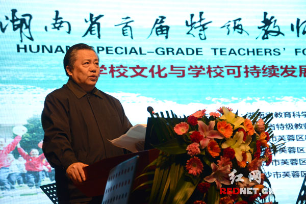 (湖南首届特级教师论坛开幕,以“学校文化与学校可持续发展”为主题。)