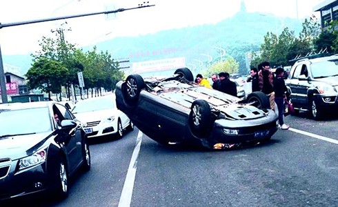 红网岳阳站12月6日讯(分站记者 丁瑜)昨日下午2点左右,在金鹗隧道前往德胜南路美食街的路口,两辆小车出现刮擦,其中一辆浅褐色小车当场仰翻在路面上。记者了解到,此次事故造成一人受伤。“当时我的车在后面,突然前面这辆车一个急转,随后仰翻了过来。”市民李先生心有余悸地告诉记者,当时自己的车正跟在后面,这辆车翻过来后,自己一个急刹,紧急将车停了下来,“小车的车主已经出来了,幸好当时车里只有他一个人。”