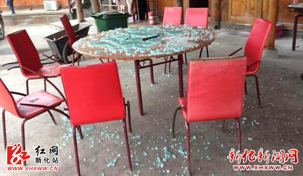 红网新化站12月10日讯(分站记者 周洁) 12月8日晚10时许,新化水车镇石丰村一精神病患者邹某在紫鹊界梯田景区民俗演艺中心手持木棍、杀猪刀打砸车辆、餐厅、路灯设备,致5人受伤,轰隆隆的打砸声打破了紫鹊界夜晚的宁静。