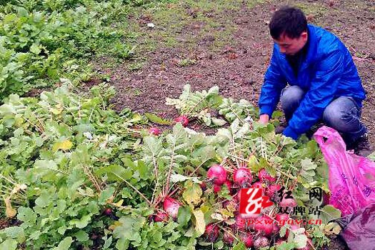 双牌县大坪江村300多亩紫光萝卜喜获丰收