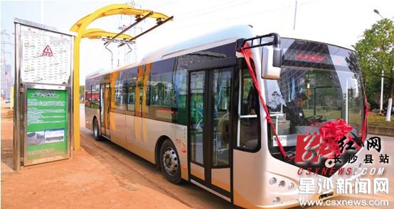电动公交车于12月8日在长沙县开始正式试营,图为101路电动公交车正在站点充电。刘晓东摄