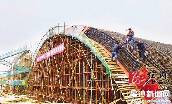 松雅湖大桥设计长117米,为双向四车道。目前正在紧张施工建设中,预计春节前夕左幅主拱圈完工。章帝 摄