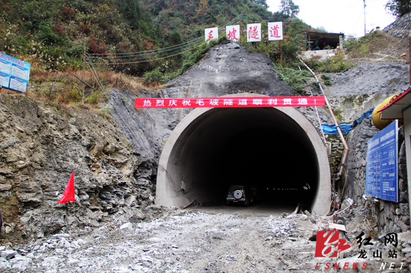 毛坡隧道位于龙山县桂塘镇毛坡,隧道全长435米,洞身净宽9米,是龙里二级公路设计最长的隧道工程和控制性工程。该隧道于今年6月份开工建设,施工单位岳阳路桥克服地质复杂多变等困难,仅用6个月时间便顺利完成了隧道的贯通。
