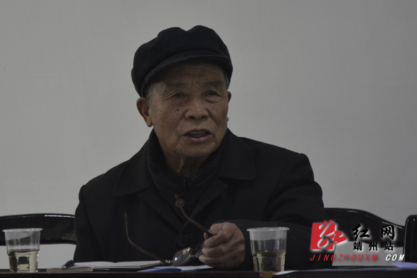 靖州县老年大学校长罗生根汇报全县老年教育工作。 覃雪莲 摄