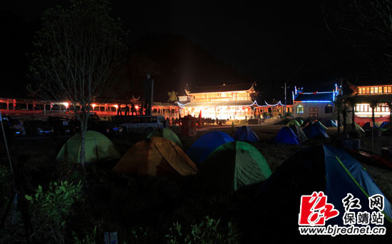 当天上午,驴友们到了亨章村。一下车,他们就被眼前如油画般的景色吸引了,咔咔的相机声不绝于耳。亨章村举行了隆重的欢迎仪式,欢迎驴友们的到来,打溜子、拦门歌、拦门酒激起了驴友们的兴致。在平地上支好帐篷后,驴友们参观了“入口印象”游客综合服务区、“七彩溪里”休闲观光带、“诗画田园”农耕文化体验区、“土风古韵”民俗风情度假区、“幽林野趣”山地运动休闲区和“茶果飘香”生态茶果生产区。