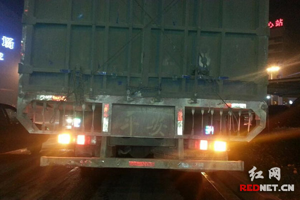 红网株洲12月18日讯(通讯员 管丽)晚上开车怕电子眼,取了车牌就“肆无忌惮”。12月17日晚上,一辆外地牌照的大货车,取了牌照开夜车,被执勤的湖南省株洲荷塘交警查获后,司机竟然称“在外地不熟悉路,想躲电子眼。”