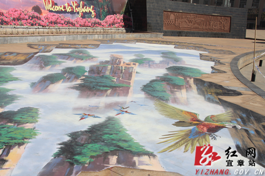 红网宜章站12月18日讯(分站记者 李云)站在高耸的山顶眺望远方,乘着鹦鹉的翅膀穿越云海……近日,一幅巨幅3D画在宜人广场亮相。神奇的3D画把平面的一切景物变得栩栩如生,给了市民无限的想象空间。
