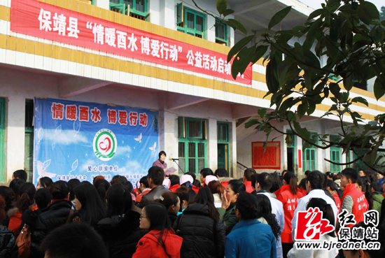 红网保靖站12月18日讯(分站记者 易果 张承印)12月17日,湖南省保靖县“情暖酉水 博爱行动”大型公益活动在县碗米坡镇太平小学启动。保靖县委副书记、县红十字名誉会长宋宗江、县委常委、宣传部部长、副县长、县红十字全会长尹海霞出席这次活动。
