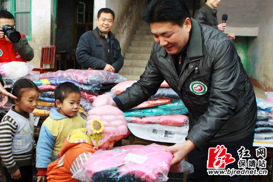 宋宗江为学生发放衣物