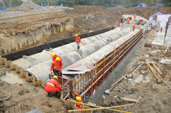 红网常德站12月20日讯(常德日报见习记者 焦阳)昨日,市城区武陵桥改造工程施工现场,工人们正在加紧安装桥梁下部的导流管。目前,工程已进入到下部构造加速阶段,预计春节前完成桥的下部构造。按照总体计划,整个工程预计明年6月完成主桥建设,7月正式通车。
