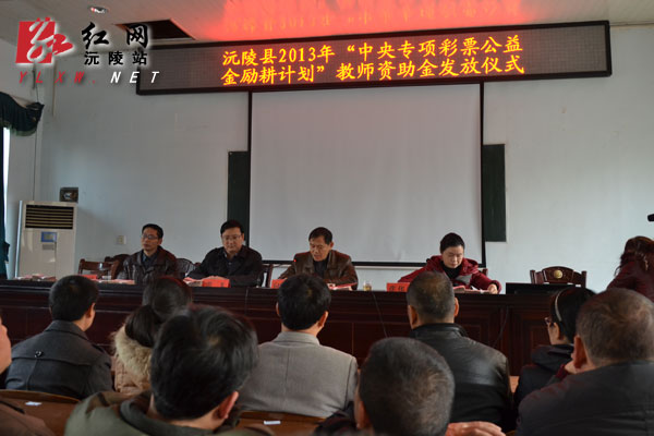 红网沅陵站12月21日讯(分站记者 瞿宏红) 12月20日,我县2013年“中央专项彩票公益金励励耕计划”教师资助金发放仪式举行。69名中小学贫困教师得到资助。