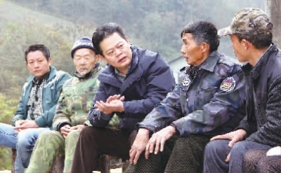 常德市委书记王群来到位于石门县西北山区的扶贫点村麻纳峪,慰问困难群众、查看基础设施和产业发展情况,并与当地党员干部和群众促膝交谈。李寒露 摄