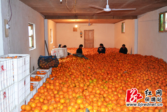 红网保靖站12月23日讯(通讯员 田仁喜 张毅 何建军)保靖县大妥乡踏梯村喜溪组柑桔大户吴宗文一家正在自己新修建的20吨柑桔贮藏仓库里进行柑橘分级。据了解,今年他们家的2300多根“纽荷尔”橘橙树喜获丰收,产优质柑橘20万斤。