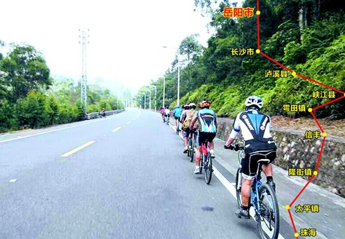 万彬今年24岁,岳阳县杨林乡人。目前在珠海经营着一家照明设备公司。今年5月,他组织成立了一家骑行俱乐部,成员大多来自岳阳。此次骑行线路是从珠海出发,途经中山、广州白云、从化、新丰、连平、龙南、信丰、赣州、遂川、太和、吉安、新余、宜春、萍乡、株洲,最后到达长沙,全程约1337公里,计划7天到达目的地。如果天气良好,没有雨雪,他们将选择107国道北上骑行返乡。目前已报名的骑友中有8个是岳阳人。