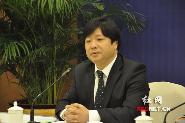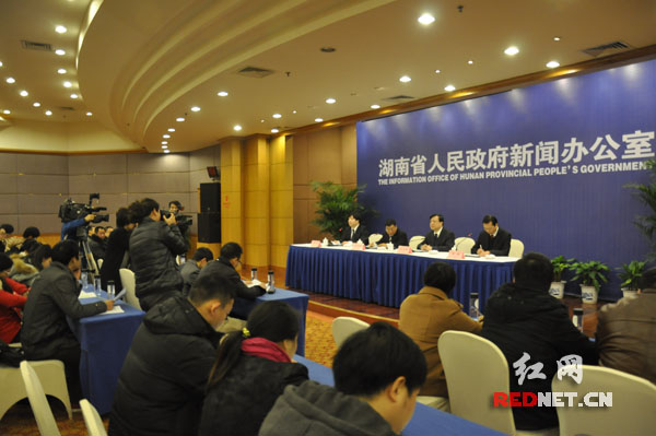 (湖南省委宣传部副部长、省政府新闻办主任周湘主持新闻发布会。)