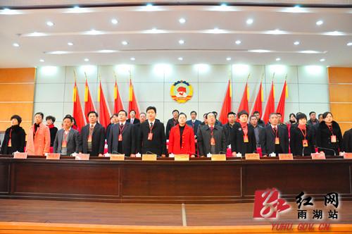 在庄严的国歌声中,政协湘潭市雨湖区第五届委员会第二次会议胜利闭幕