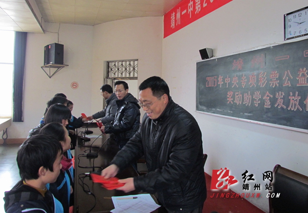 红网靖州站12月25日讯(通讯员 吴霞)12月23日,靖州一中举行“中央专项彩票公益金滋蕙计划”助学金发放仪式。该校64名品学兼优的贫困高中生每人获得2000元资助。