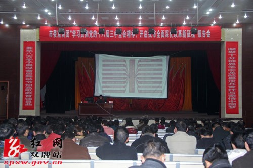 报告会由市委讲师团主任伍春波主讲。报告会上,伍春波主任用简练、通俗、朴实的语言,从全面深化改革的重大意义、全面深化改革的重大举措及要解决的重大问题、永州如何贯彻落实等方面深入浅出地对党的十八届三中全会精神作了讲解和诠释。