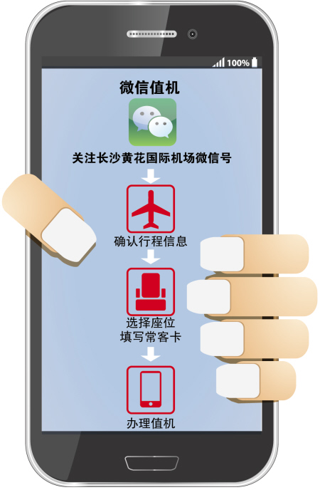 本报讯(记者 吴鑫矾 通讯员 刘全 汤芳)飞机虽快,但由于值机等手续繁杂,市民往往需要提前到机场办理业务。从今日起,长沙黄花国际机场推出“一证通关”业务,市民持二代身份证(无托运行李)可直接前往专属安检通道,快速值机、安检。同时,市民可通过手机微信选择座位办理“微信值机”,无需再到机场柜台选择座位了。为了方便高铁旅客乘坐飞机,机场还在武广高铁站配备了最先进的城市值机设备,旅客在高铁站就可办理值机手续,实现“地空联运”,长沙机场也将成为国内首批推出此类服务的机场。