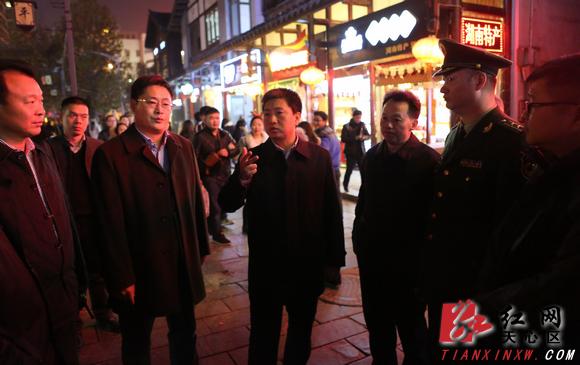 红网天心站12月26日讯(通讯员 徐拓)为保证“两节”期间人民群众生产生活安全,确保人民群众过上安全祥和“两节”。12月24日,长沙市天心区委书记曾超群,区委副书记、区长朱东铁,区领导骆正平、谭雄伟、侯向宇以及相关单位负责人深入市场、宾馆、酒吧街等娱乐场所督察安全生产工作。