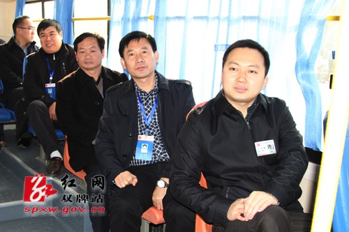 图:苏小康、魏和胜等县级领导及相关部门负责人一起乘坐首发车