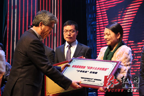长沙市委常委、宣传部长张湘涛给获得“长沙十大乡村美景”的单位颁奖。解巾英 摄
