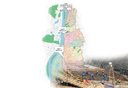 昨日,记者在该工程施工现场见到一派繁忙的场景,挖掘机在不断地挥动着巨臂挖土,而正在建设的箱涵工地,运输车在不断地来回输送着混凝土,施工人员则轧着钢筋,支着模板,忙碌地浇倒着混凝土。
