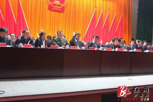 大会以举手表决的方式,一致通过了《会议表决通过了《关于泸溪县人民政府工作报告的决议(草案)》、《关于泸溪县2013年国民经济和社会发展计划执行情况与2014年国民经济和社会发展计划的决议(草案)》、《关于泸溪县2013年财政预算执行情况与2014年财政预算报告的决议(草案)》、《关于泸溪县人大常委会工作报告的决议(草案)》、《关于泸溪县人民法院工作报告的决议(草案)》、《关于泸溪县人民检察院工作报告的决议(草案)》。