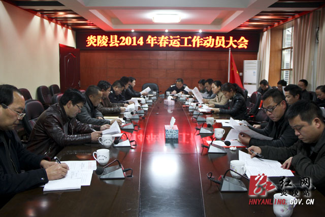 红网炎陵站1月7日讯(分站记者 史天军 彭新平)今天下午,炎陵县2014年春运工作动员大会在县政府二楼会议室召开。会议的主要任务是传达贯彻落实省、市春运工作会议精神,安排部署2014年全县春运工作,确保广大人民群众能够过上一个欢乐、祥和的新春佳节。