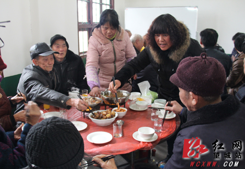 红网望城站1月9日讯(分站记者 刘赛)1月8日是农历腊月初八,在中国民间,这一天是阖家团圆、祈求吉祥的日子,“腊八”一过,年味就越来越浓了。1月8日,望城区书堂山街道孝心村邀请村里51位五保户老人一起互话家常,共庆“腊八”,浓浓的温情弥漫了整个孝心村。