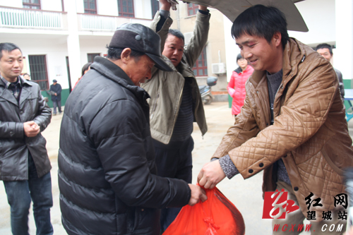 孝心村还向每位五保老人送上了五斤鱼和五斤肉,提前祝福老人们新年快乐。(刘赛 摄)