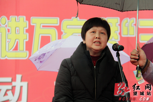 望城区委常委、宣传部长王华英的宣布,“我们的中国梦”文化进万家活动暨“三下乡”活动正式启动。(刘赛 摄)