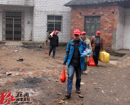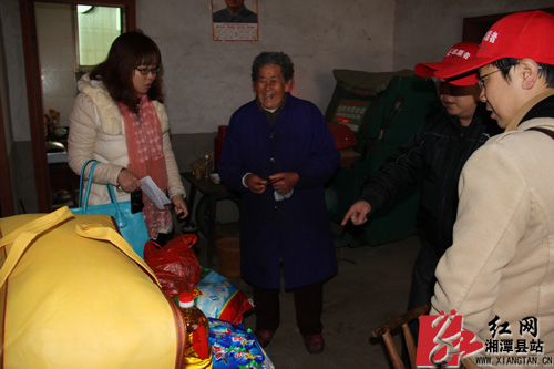 红网湘潭县站1月15日讯(分站记者 罗建)“这是我们的一点点心意,提前祝您春节愉快,身体健康。”1月14日一大早,易俗河镇的各大社区里流动着几个戴着红色帽子、扛着米油的人,只见大家怀着满满的热情和激情,快步穿梭在社区间。原来,这是湘潭县网湖湘源志愿者们正在开展“送温暖”活动,走访慰问社区的贫困户,他们身上扛的、手里提的正是送给贫困户的生活物资。