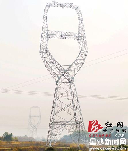 此次新建的星沙500千伏输变电工程的铁塔为全国首创的猫型双回路铁塔,状如猫头