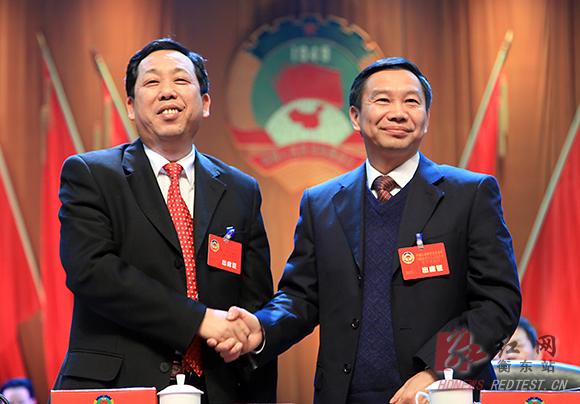 图:县政协党组书记夏崇礼(图右)当选县政协主席。